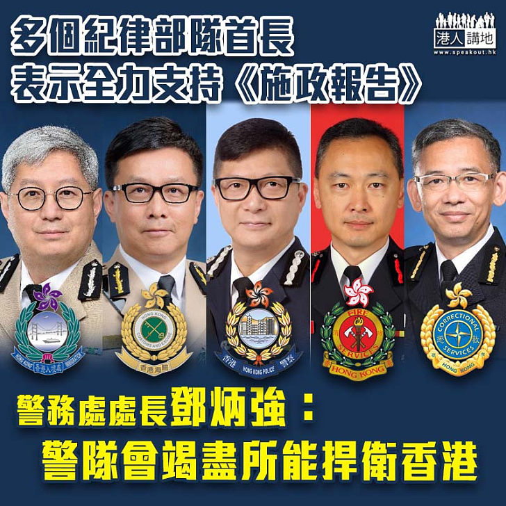 Source: hk.on.cc Jul 03, 2021 · 五個紀律部隊首長表示,各紀律部隊將團結一致,全力配合警隊執法,竭力打擊本土恐怖主義活動,保護香港市民安全,維持社會安寧及保障國家安全,聲明中亦感謝警員堅守崗位,祝願受傷警早日康復,並慰問其家人。